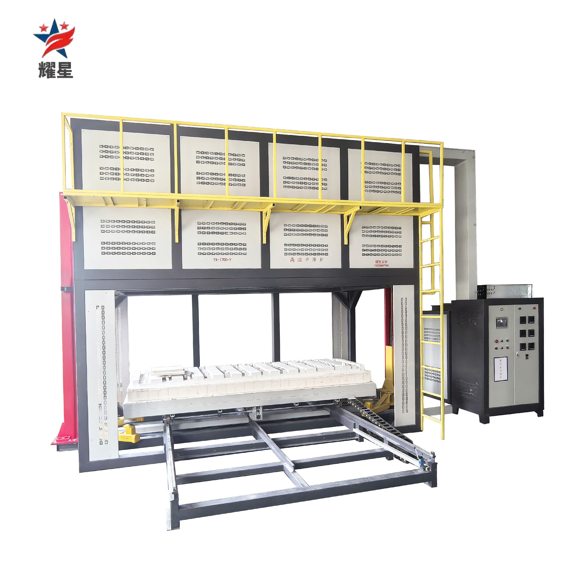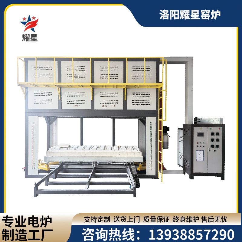 YX系列升降炉产品主要针对工厂批量生产应用开发,升降炉主要有炉膛、温控系统、炉底升降系统、炉底行走系统构成,炉膛和温控系统分体式设计,独立温度控制箱,面板整齐清晰;炉底升降,炉底与炉膛采用耦合密封,自动限位,开关按钮集成在温控箱面板上,美观、易操作,优质的炉膛材料和稳定的温度控制系统,可保证实验数据的可靠性;产品采用新型轻质莫来石陶瓷材料作为炉膛材料,选用质优的硅碳棒或硅钼棒作为发热体,温度控制器采用智能PID控制模块,可实现精确的控温和恒温要求。炉门电动升降,物料下装载,炉门台车可以沿轨道移出炉体,可以进行叉车和吊车进行物料装载,采用精密螺旋丝杠配合线性导柱上下机械运动,炉门运行平稳无振动。